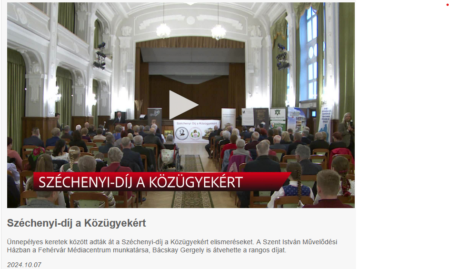 Fehérvár TV - Széchenyi-díj a Közügyekért - Ünnepélyes keretek között adták át a Széchenyi-díj a Közügyekért elismeréseket. A Szent István Művelődési Házban a Fehérvár Médiacentrum munkatársa, Bácskay Gergely is átvehette a rangos díjat.